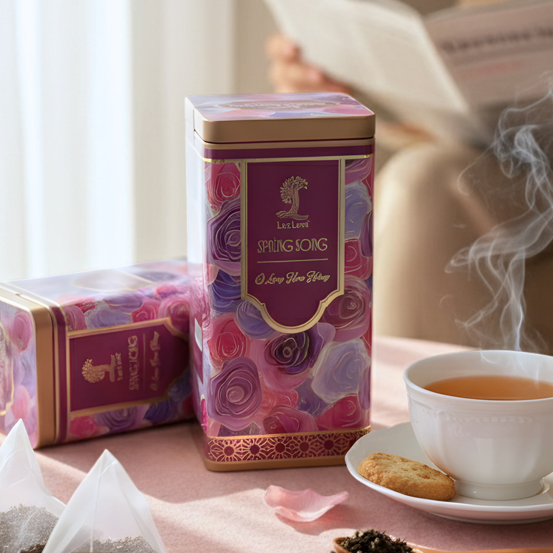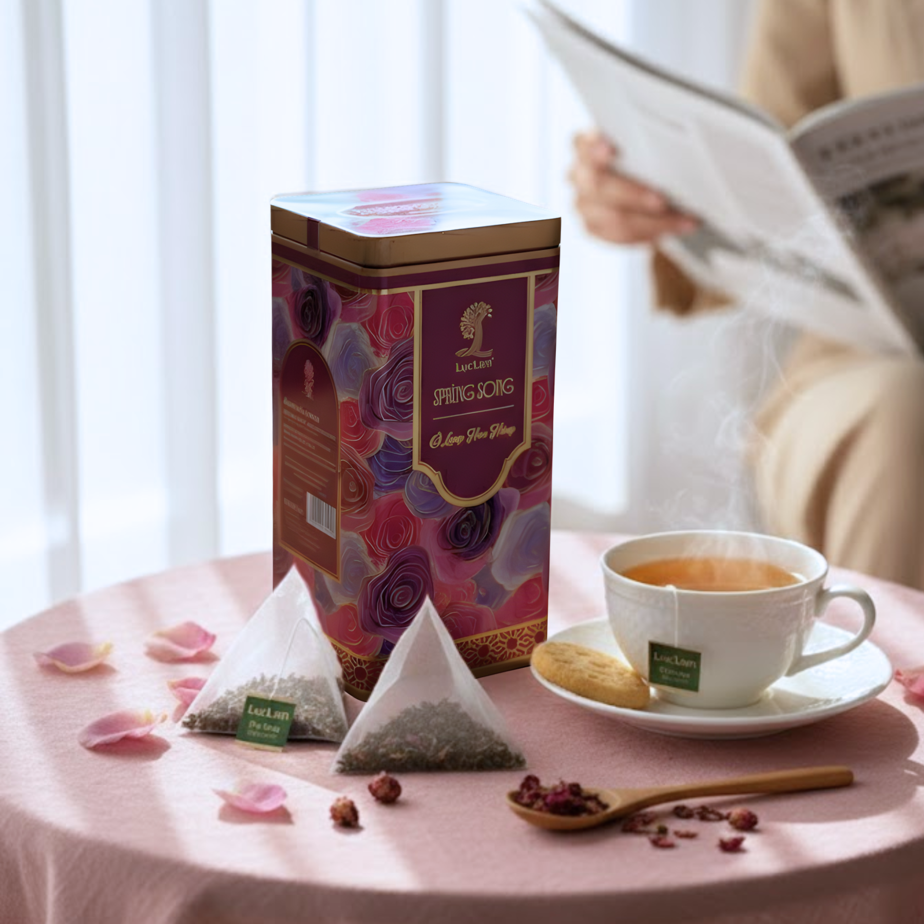 Spring Song - Trà OoLong Hoa Hồng - Hộp Thiếc Vuông Cao