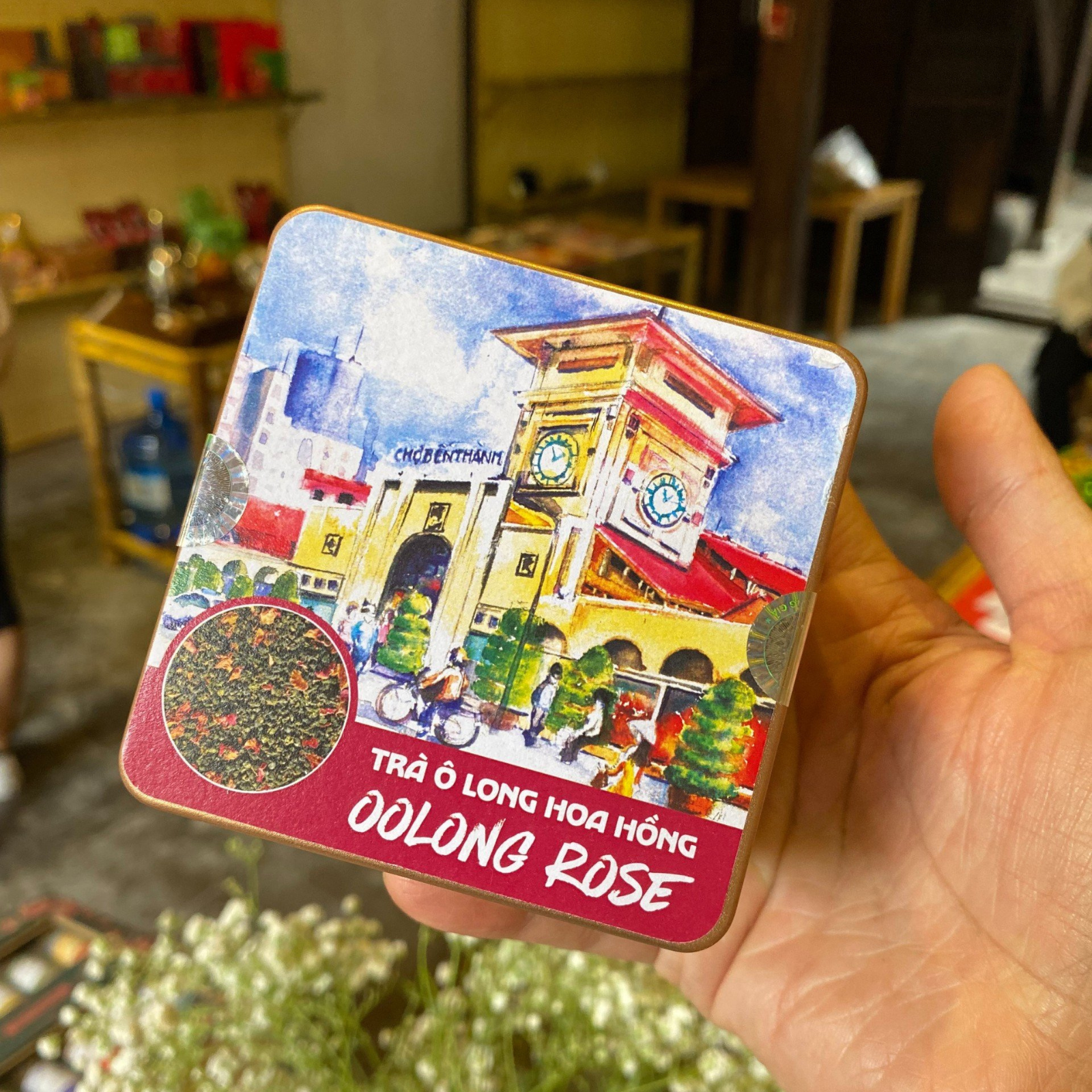 Trà Ô Long Hoa Hồng – Hộp Thiếc Vuông Màu Nước 50g | Hương thơm thanh khiết, vị trà nhẹ nhàng, thư giãn và làm đẹp da